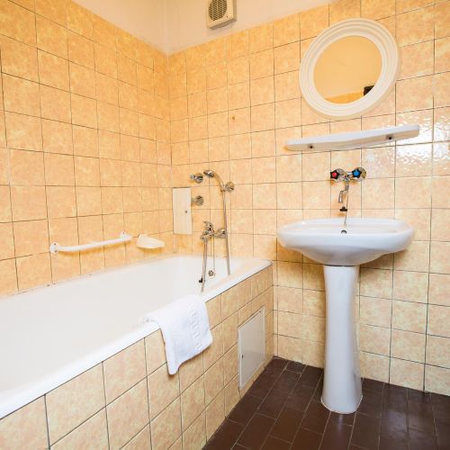 Každý pokoj má vlastní sociální zařízení a televizi.